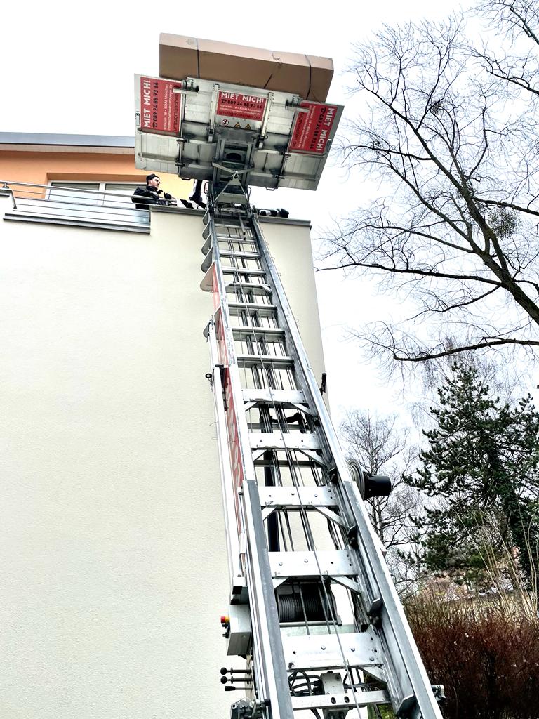 München – Für dieses Transportmittel gibt es viele Namen, ob Möbellift (Möbel-lift), Möbelaufzug, Außenaufzug oder Schrägaufzug. Damit ist der Lift gemeint den man außen an einem Gebäude anbringt um Möbel durch das Fenster oder Balkon nach unten bzw. von unten nach oben zu transportieren. Das ist meist notwendig wenn es um sperrige Möbel geht oder wenn der Treppenschacht zu klein und zu eng ist. Somit lässt sich beim Transport viel Zeit sparen. Der Aufbau des Lifts ist relativ einfach.